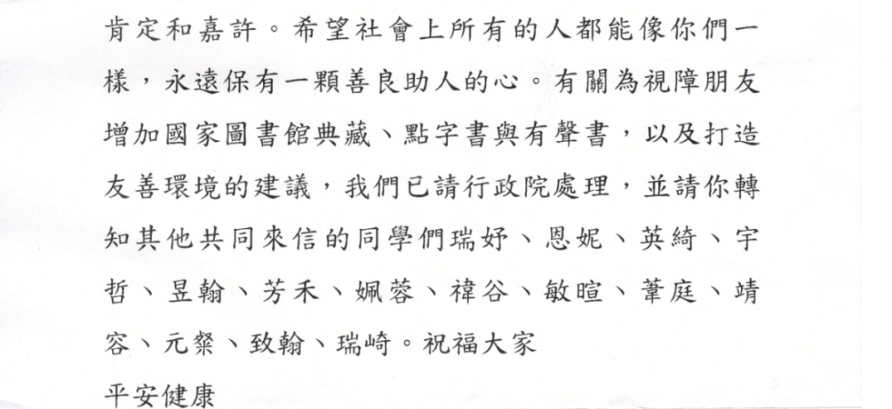 (3)作品納入國家圖書館典藏,協助更多視障同學。