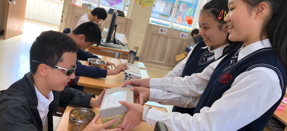 利他:在參訪啟明學校後,我們發現視障學生在學習上十分非常困難。翻譯成點字的書籍極為少數,即使有翻譯,那點字書又厚又重,也不方便攜帶。靜心的同學們起心動念,設計「為愛朗讀」計畫,協助啟明學校視障同學多多認識台灣文學家的作品。國小組同學朗讀黃春明老師的兒童繪本,將裡面五首作品的童趣一一展現;國中組同學朗讀郝廣才先生的「英雄」十篇,裡面每一篇都是發人深省的勵志小品。希望能藉此帶給啟明學校的同學更多鼓舞,點燃人生的希望。
