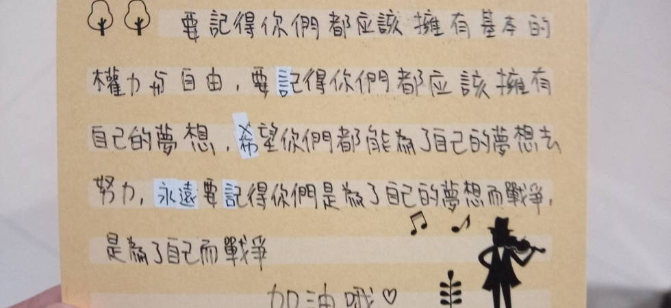 我們期望所有參與過寫作會的人,成為種子,去散播推廣人權議題,使他們不在只是被動的參與者,而是主動的推廣人。