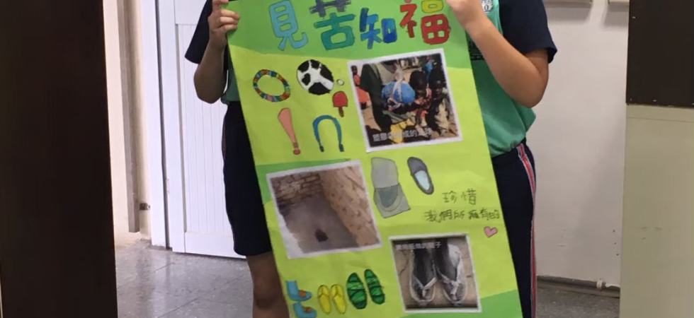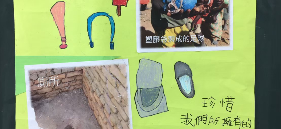 從世界地圖打開課程序幕,帶學生找到非洲的地理位置,然後介紹非洲的環境與生活現況。看到非洲的孩子只能用簡陋的物品充當玩具、得走長程扛水、穿寶特瓶壓扁做成的鞋子,學生們很震撼也很意外。電腦課學生設計了自己的頭像小卡,在卡片上寫下自己要珍惜的東西。有學生寫珍惜有食物與乾淨飲水、有很多玩具,也有學生寫要珍惜「時間」、珍惜「家人」,見苦知福更感恩所擁有的一切。