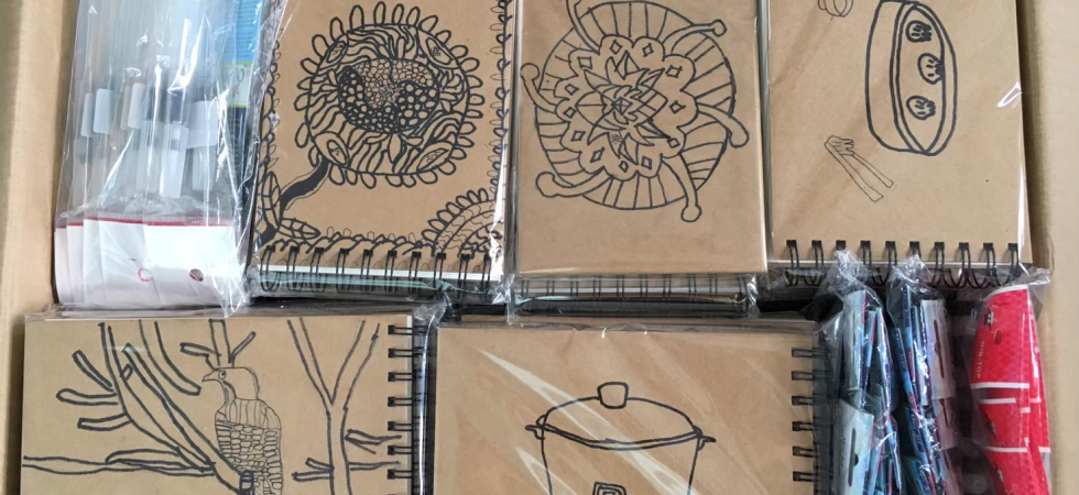 學生們各自選擇能付出的行動為目標努力宣傳。結果我們很快速的募到需要的金額甚至超過,又再購買了畫本與水筆。學生還手繪帆布袋加上小卡,感謝捐款者的善心。同儕互相合作完成共同的目標,過程中不是互相比較,學生反而是體驗到互相支援與分工解決問題。例如要對外宣傳時,有學生不敢自己一個人行動,他們就會找同學一起,分配要介紹的內容,這樣比較不會害怕也能講述清楚將捐款購買要捐助的物資後,我們想要藉此也向非洲孩子介紹台灣的文化,於是分成兩組,一組在在畫本上小吃與物品的線畫,一組以台灣老花磚延伸在畫本上繪製纏繞畫,希望非洲的孩子在使用畫本時,對台灣有更深刻的印象。