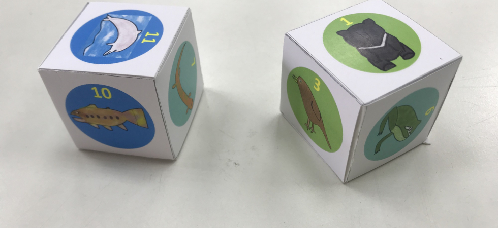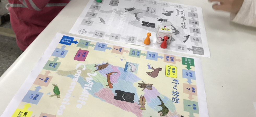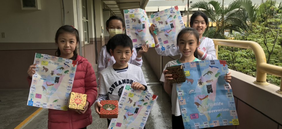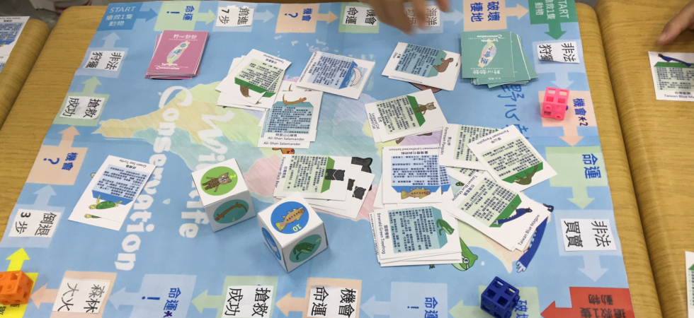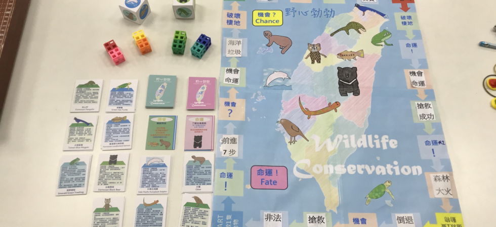 製作桌遊配件:完成了一套野生動物保育桌遊。我們在行動中了解台灣保育類動物分級,並設計到保育動物牌卡中。並將保育動物的方法也設計到桌遊中,玩成了保育版圖、保育動物卡、機會卡、命運卡及動物骰。