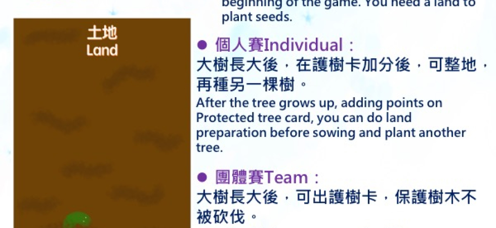 透過桌遊讓同學們知道種樹的好處以及種樹在生活中扮演的角色。令我覺得我們透過桌遊推廣種樹做得非常成功。希望未來能推廣給更多人,讓更多人一起參與種樹活動,才能減緩地球暖化。