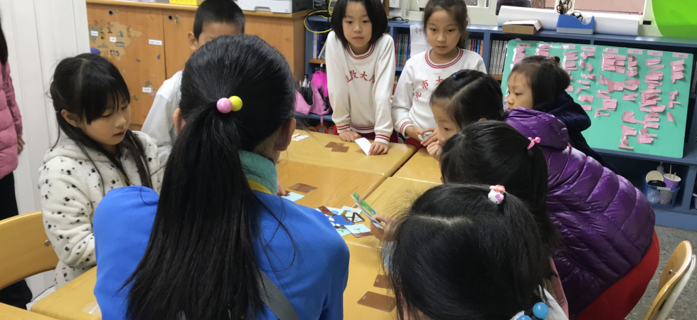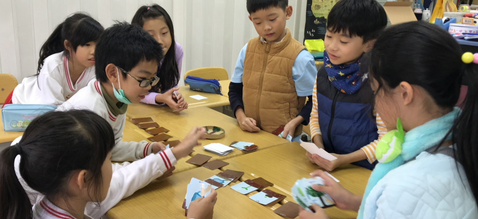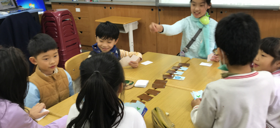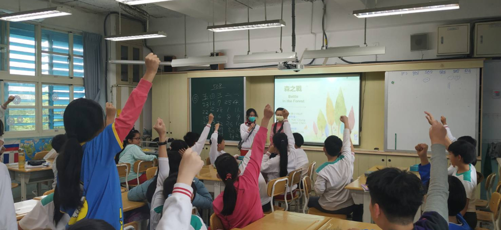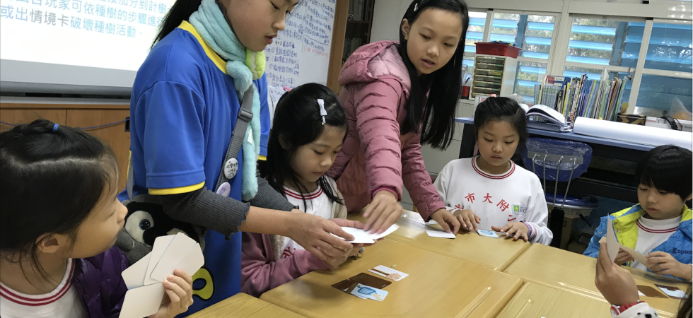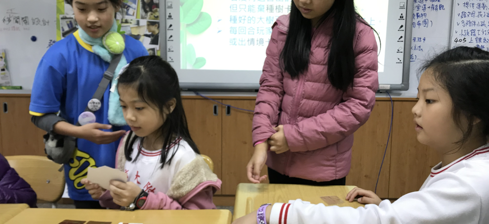 入班宣導:進到三年級及五年級班上宣導森之戰桌遊,一起導教同學或學弟妹們玩我們設計的桌遊,並進行理念宣導,讓他們了解樹的好處及對我們的重要性。
