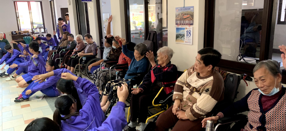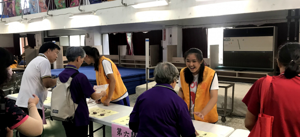 志工團隊都會到社區的養老院拜訪,除了表演給老人家們看讓他們開心,還會製作食品給予爺爺奶奶們吃與他們聊聊天幫他們按摩,另外我們團隊也與弘道老人機構合作,舉辦桌遊活動,讓年長者能夠動動頭腦,兌換物資。