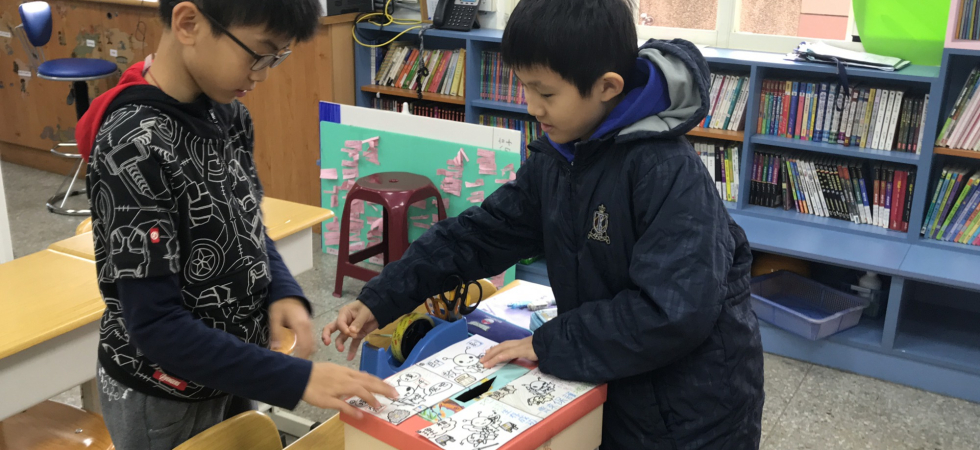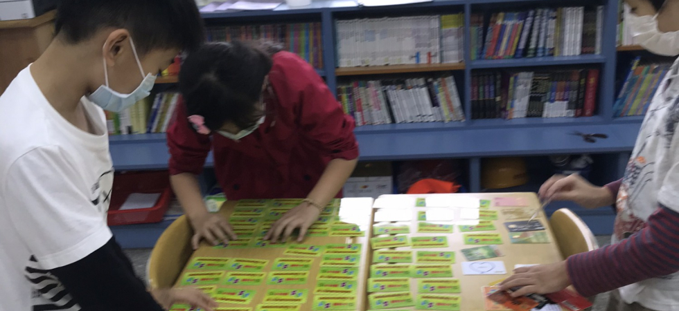 (2) 利用回收的PVC卡片貼上印製的紙張,結合其他組同學的行動,讓他們可以做成新的桌遊卡牌,讓同學利用,免錢又耐用。