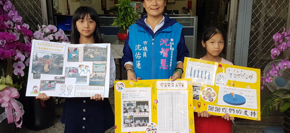 我們調查學校和社區公園的遊樂器材之後,記錄自己活動的心得,大家都有把公園大概的位置標出來,更能找出社區公園的問題。去年開始,台中市政府開始推動的「台中美樂地(Taichung Melody)」改善老舊公園計畫,陸續在台中市的公園裡推出親子共融設施,營造永續綠地及強化公園整體機能,共改建29區49座公園,台中社區公園的大象溜滑梯真的「復活」了!