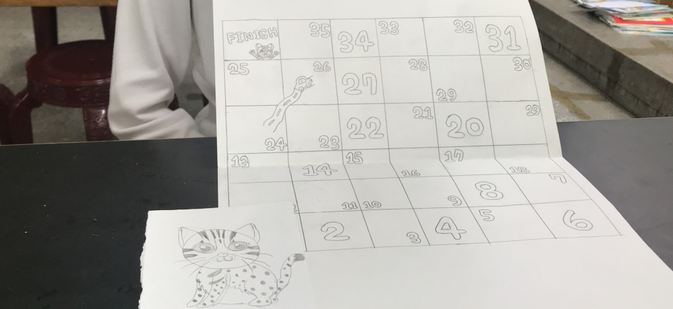 3. 設計石虎保衛戰桌遊讓大家去加入行動。改編蛇梯棋的規則,上樓梯改成種植樹木與棲地,當玩家走到這格,就可以上升;蛇改成汽車,意思是當玩家走到汽車格子就發生路殺,玩家就必須退後格子,最後成功走到終點的人就贏了,代表他有完成石虎保育的行動。