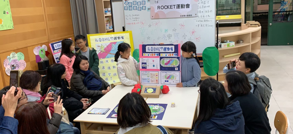學生自行設計桌遊並決定以資優班代表圖騰LOGO火箭圖做為桌遊名稱「ROCKET運動會」。孩子們將所學到適合年長者的運動設計成任務卡,融入桌遊規則中。