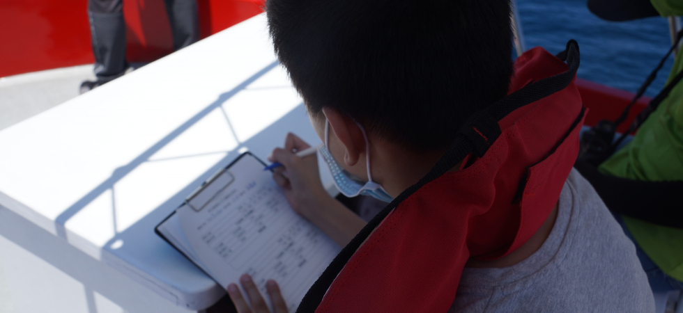 趁著疫情終於解封,我們透過搭乘賞鯨船,到海上進行調查七次,在這七次過程中,我們會記錄接觸的時間、鯨豚的種類以及行為。