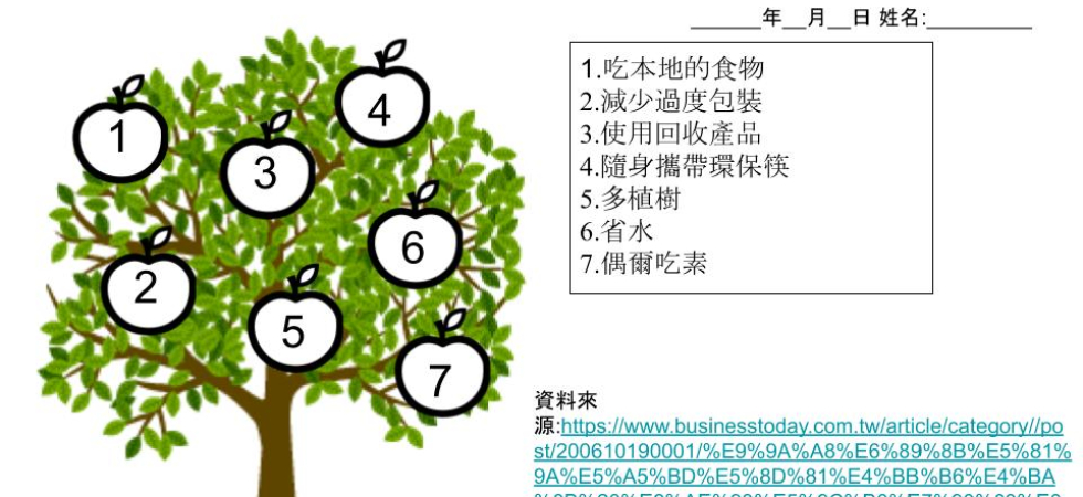 5.做節能減碳行動卡,邀請同學利用兩周時間去保護地球