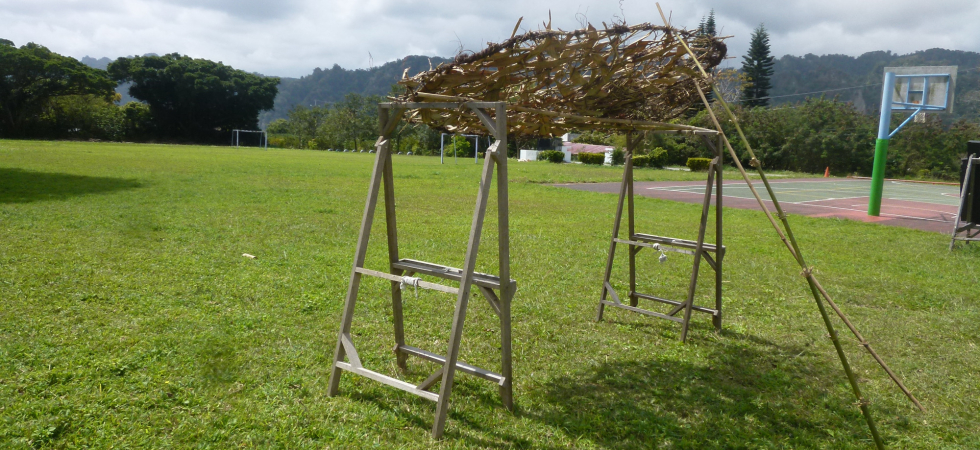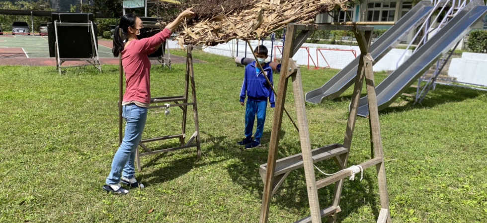 結合學校現有的校本課程——「國際教育」的課程目標,將課程的焦點放在SDG13.-「氣候變遷」這個項目上,著眼於提升氣候變遷永續教育與民眾素養。既然炎熱已是常態,我們便起心動念想來搭建一個學校中的避暑勝地。為了減少碳足跡,我們將使用在地隨手可得的素材;為了避免浪費資源,我們強調使用的材料來自回收可用的材料;透過在地氣候文理的調查與研究,以及對於氣流物理現象的認識,這個方案期望能以最有效率的物理利用,以趨近自然的條件來營造我們的酷樂屋,來克服炎熱天氣時進行戶外活動的休憩空間,降低室內空調的使用,進而減少用電量。