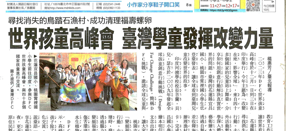 沒想到這場行動,從2021年我們與特教班孩子的繪本故事開始,到後續遇到疫情面臨困難調整,以及延續性等因素,獲選臺灣DFC協會2023年度臺灣代表故事,也在12月初前往印度,與世界各國師生分享花蓮在地故事!